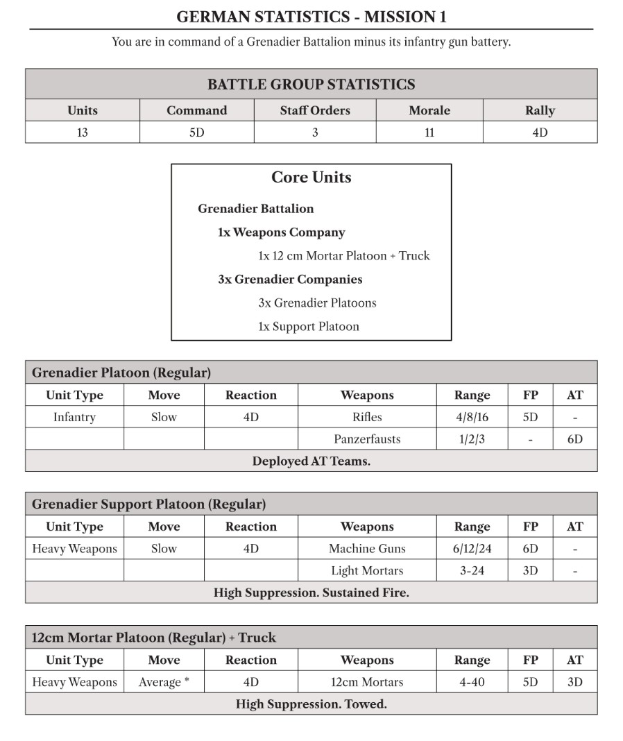Mission 1 – German Forces and Statistics